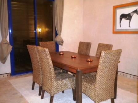 Ce bien immobilier complètement meublé avec goût est offert a la location longue durée (minimum 12 mois) au prix de 15.000-Dh/mois, disponible immédiatement.